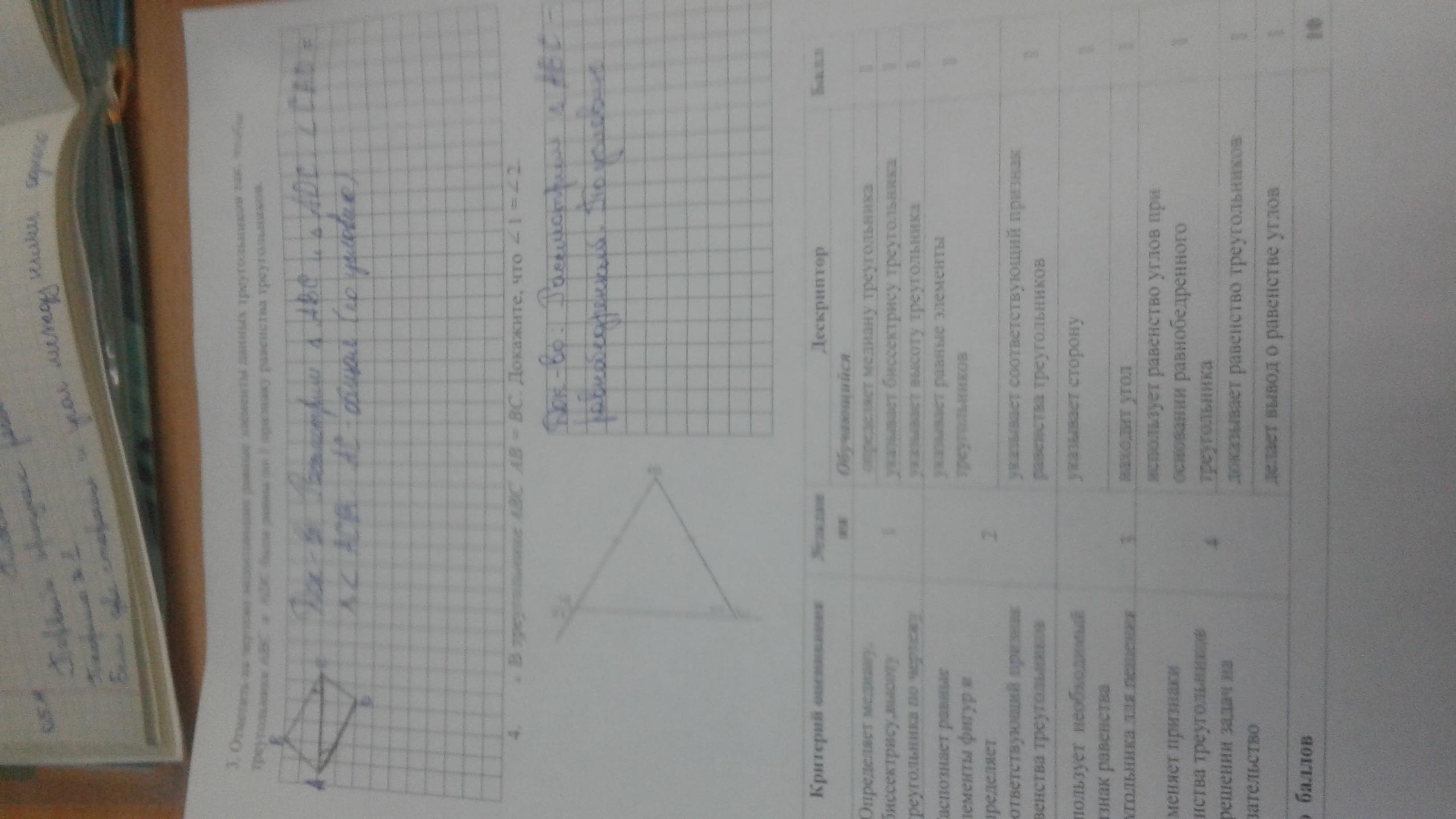 В треугольнике ABC AB=BC. Докажите что угол 1 равен углу 2