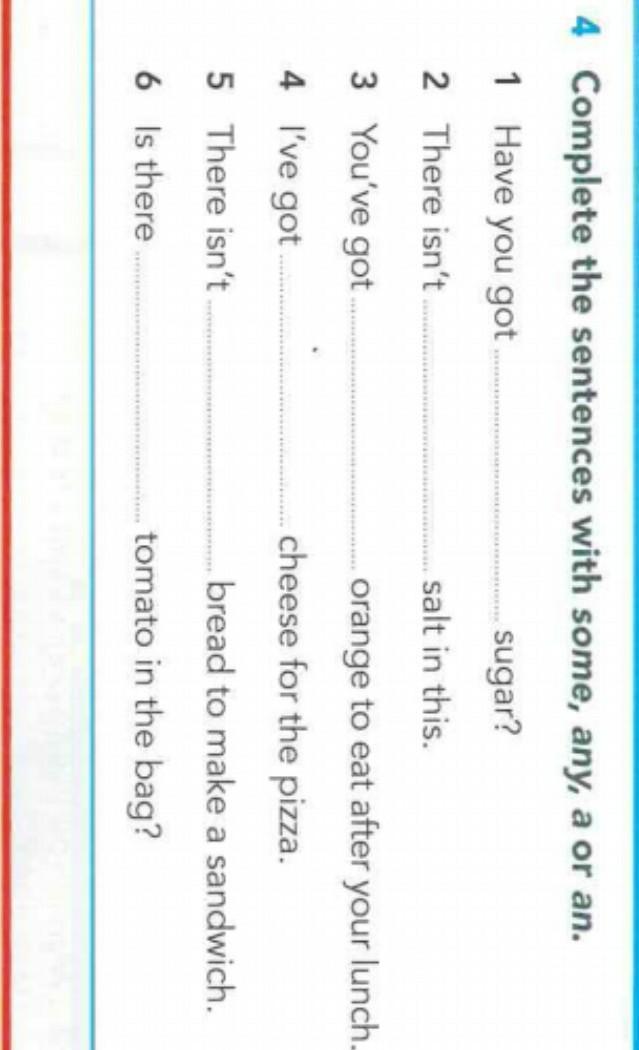 ПОЖАЛУЙСТА помогите)) Вставить a an some any в зависимости от исчесляемого/неисчесляемого и ед.ч/мн.ч.