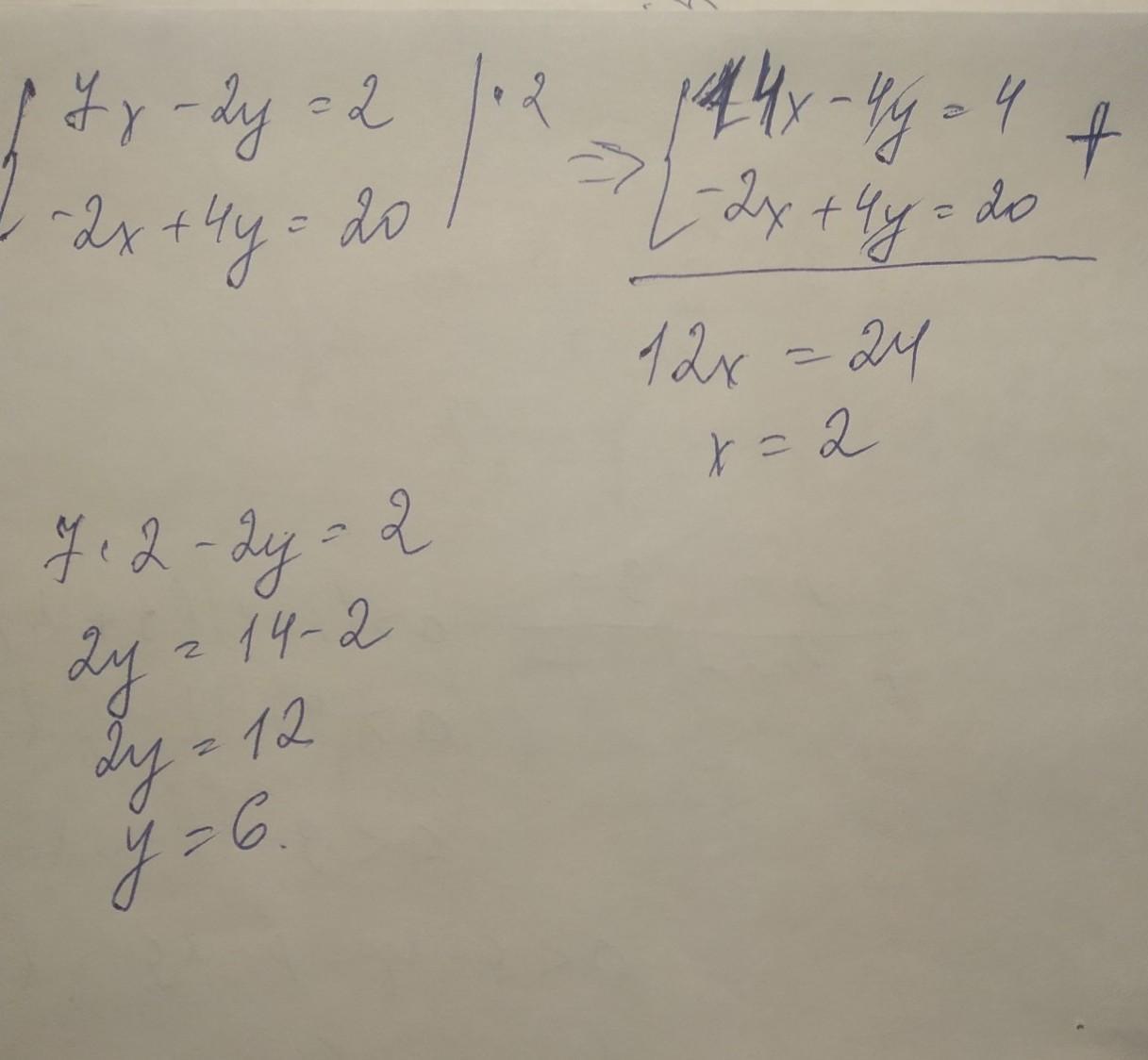 первое уравнение умножаем на 2, потом решаем методом сложения.