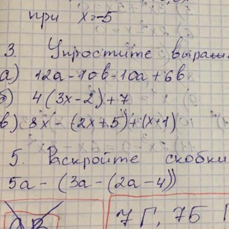 в) 8x - 2x - 5 + x + 1 = 7x - 4
