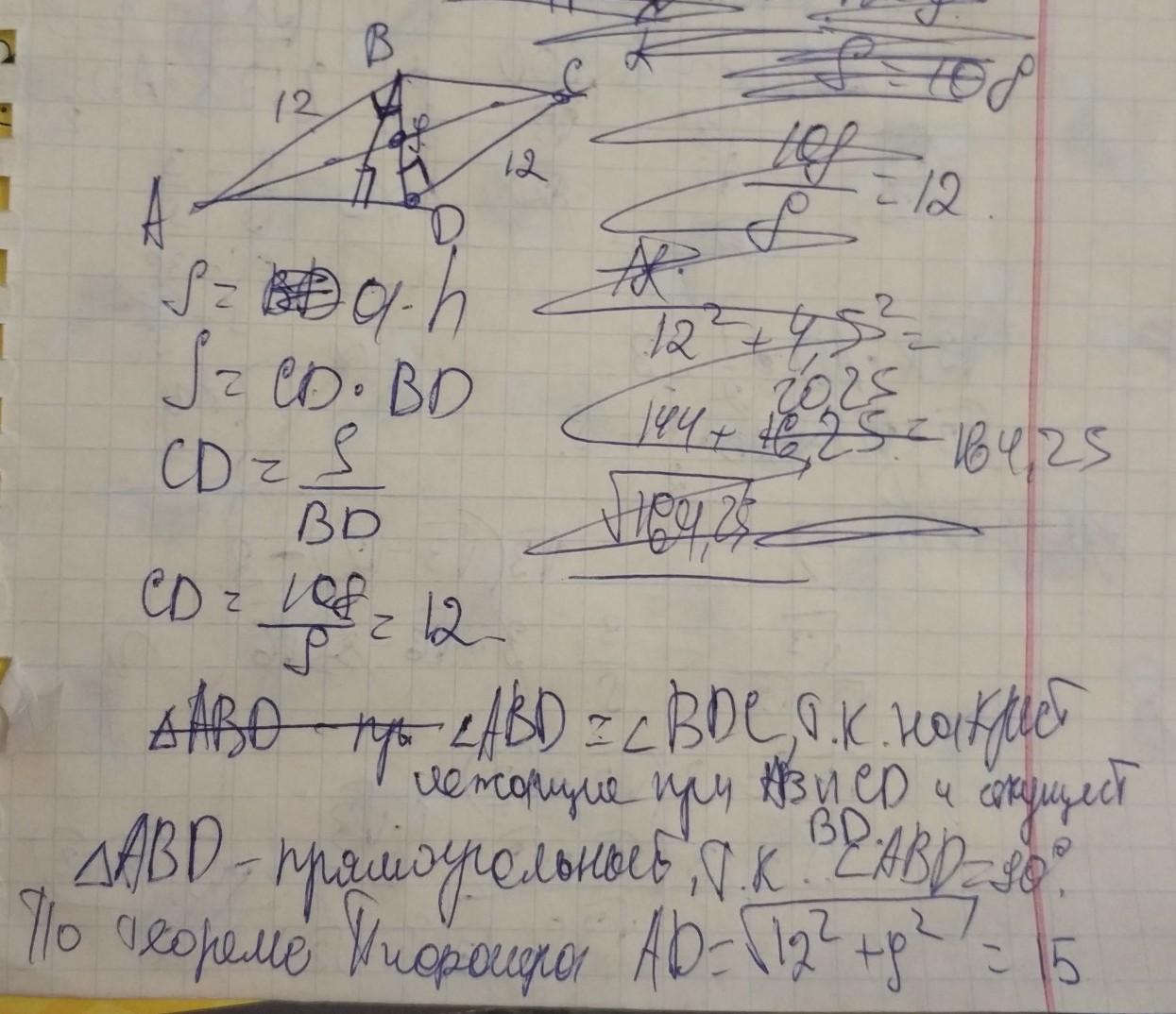 Одна из диагоналей параллелограмма является его высотой = 9 см. Найти стороны параллелограмма, если площадь = 108 см²