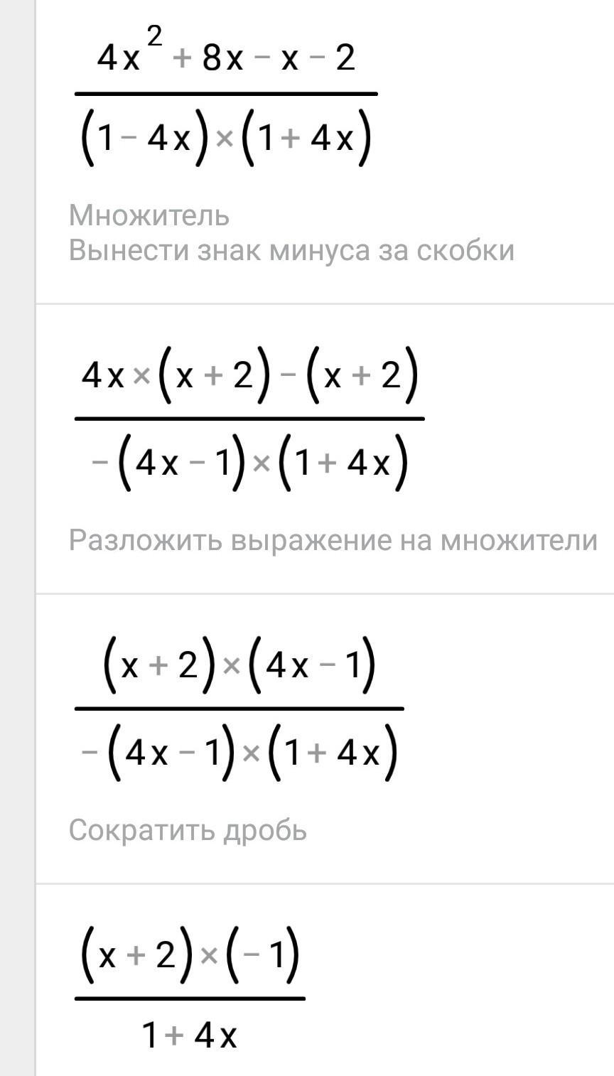 3. 4*(x-0,25)*(x+2)/(-4*(x-0,25)*(4x+1))=-(x+2)/(4x+1).
