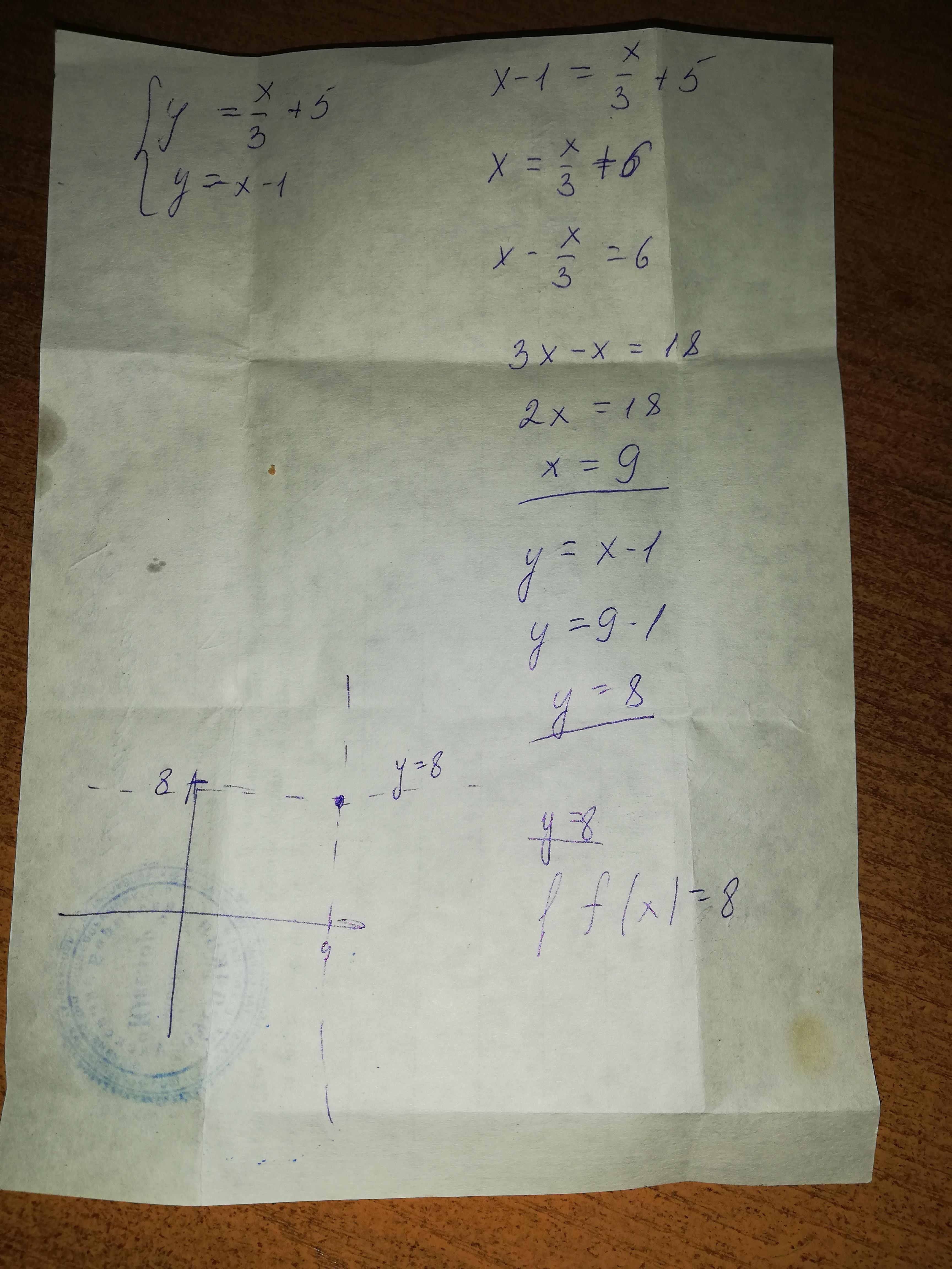 1. Находим точку пересечения прямых y=x/3 +5 и y=x-1