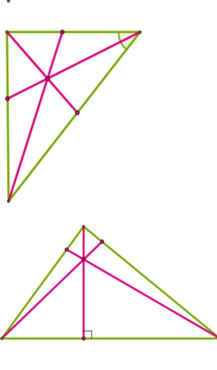 Три отрезка пересекаются в одной точке. Выбери рисунок, на котором изображены высоты треугольника