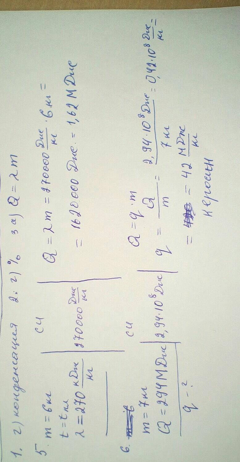 5. Какое количество теплоты выделяется в окружающую среду при кристаллизации 6 кг железа, взятого при температуре плавления? 6. при сгорании 7 кг какого-то вида топлива выделилось 294 МДж энергии. Какое топливо сгорело?