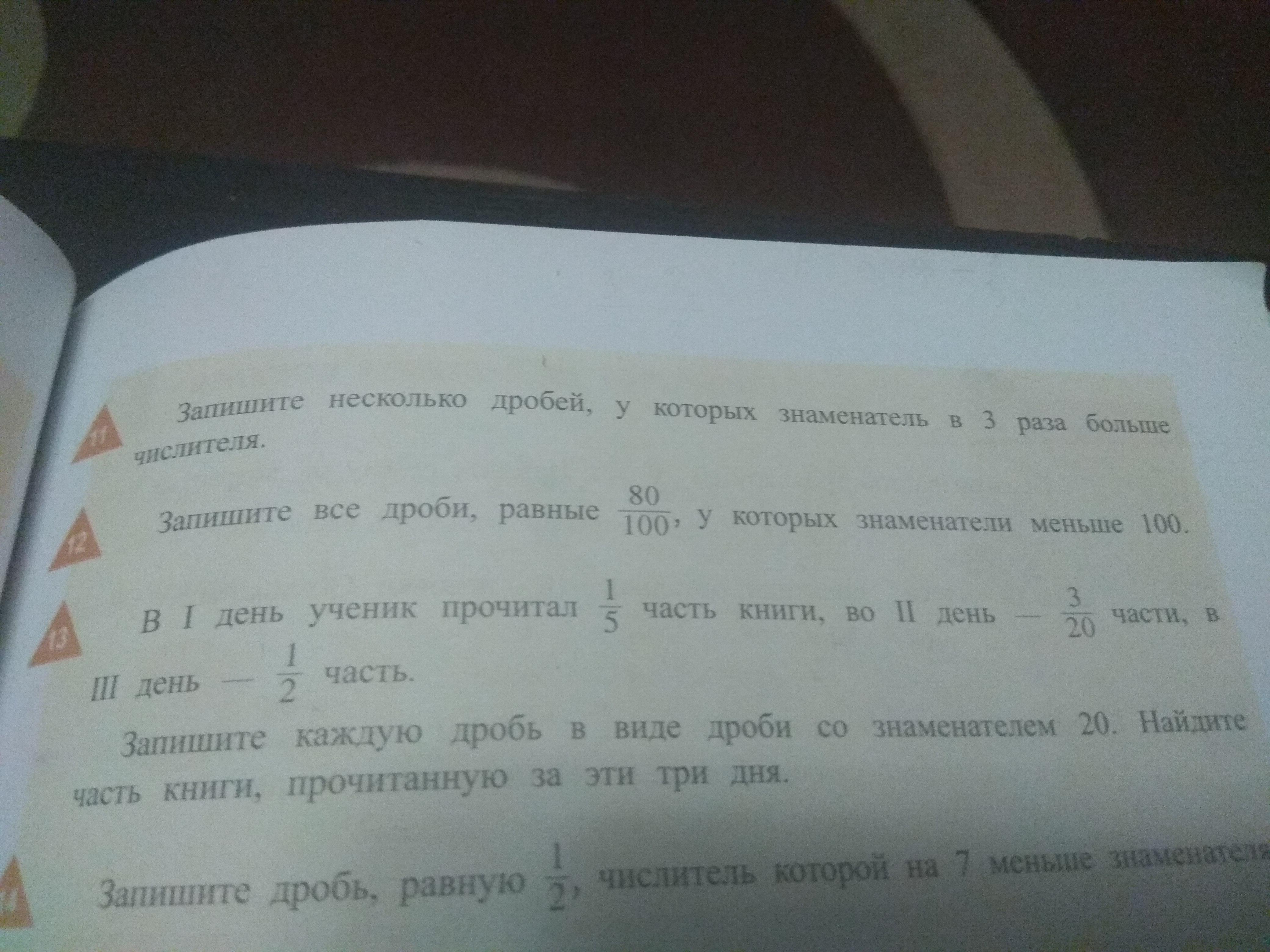 Запишите каждую дробь в виде дроби со знаминателем 20. Найдите часть книги, прочитаную за эти дни.