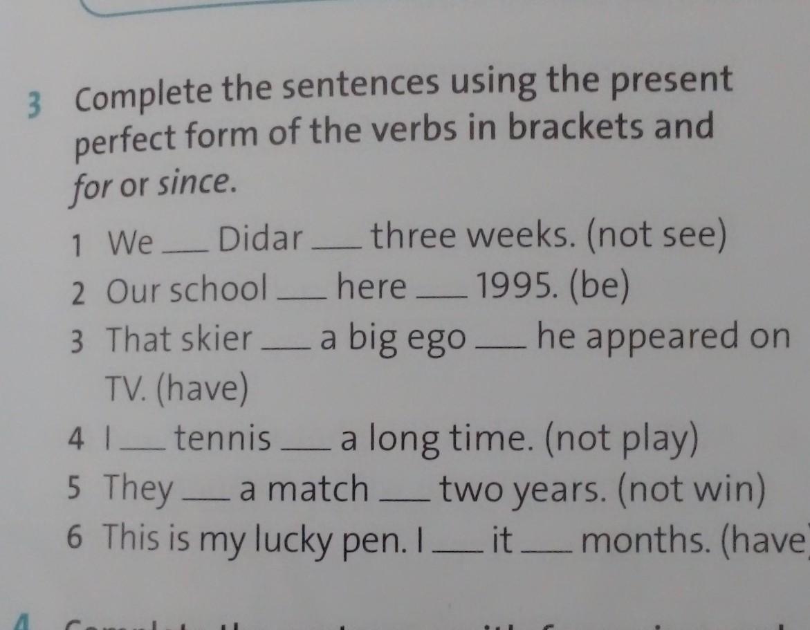 complete the sentences using the present perfect form of the verbs in brackets and for of since