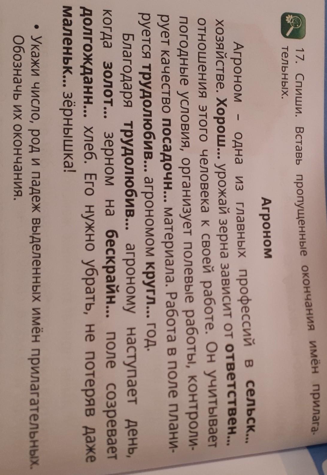 17. Спиши. Вставь пропущенные окончания имен прилагательных.