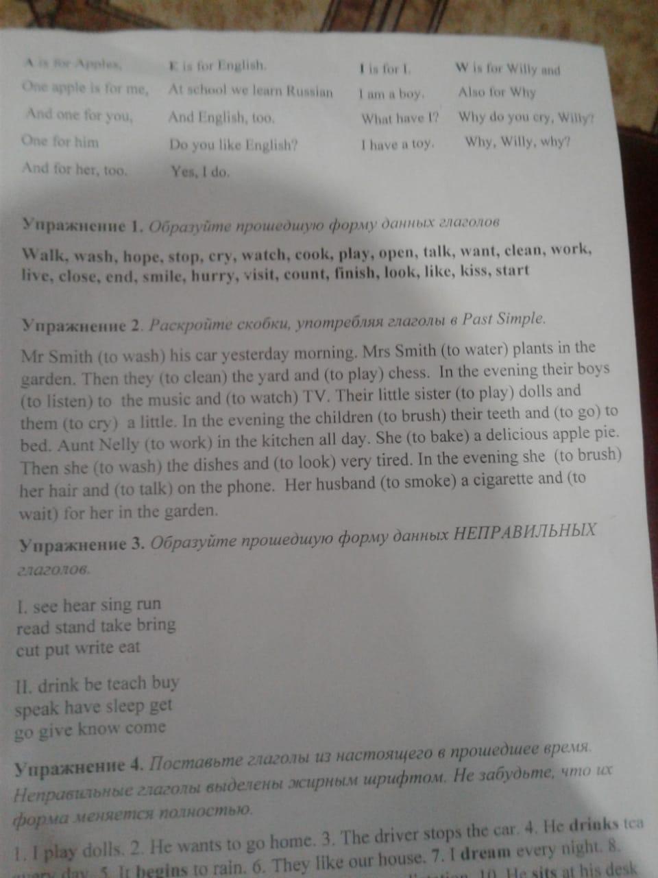 washed, watered, cleaned,played, listened, watched, played, cried, brushed, went, worked, baked, washed, looked, brushed, talked, smoked, waited
