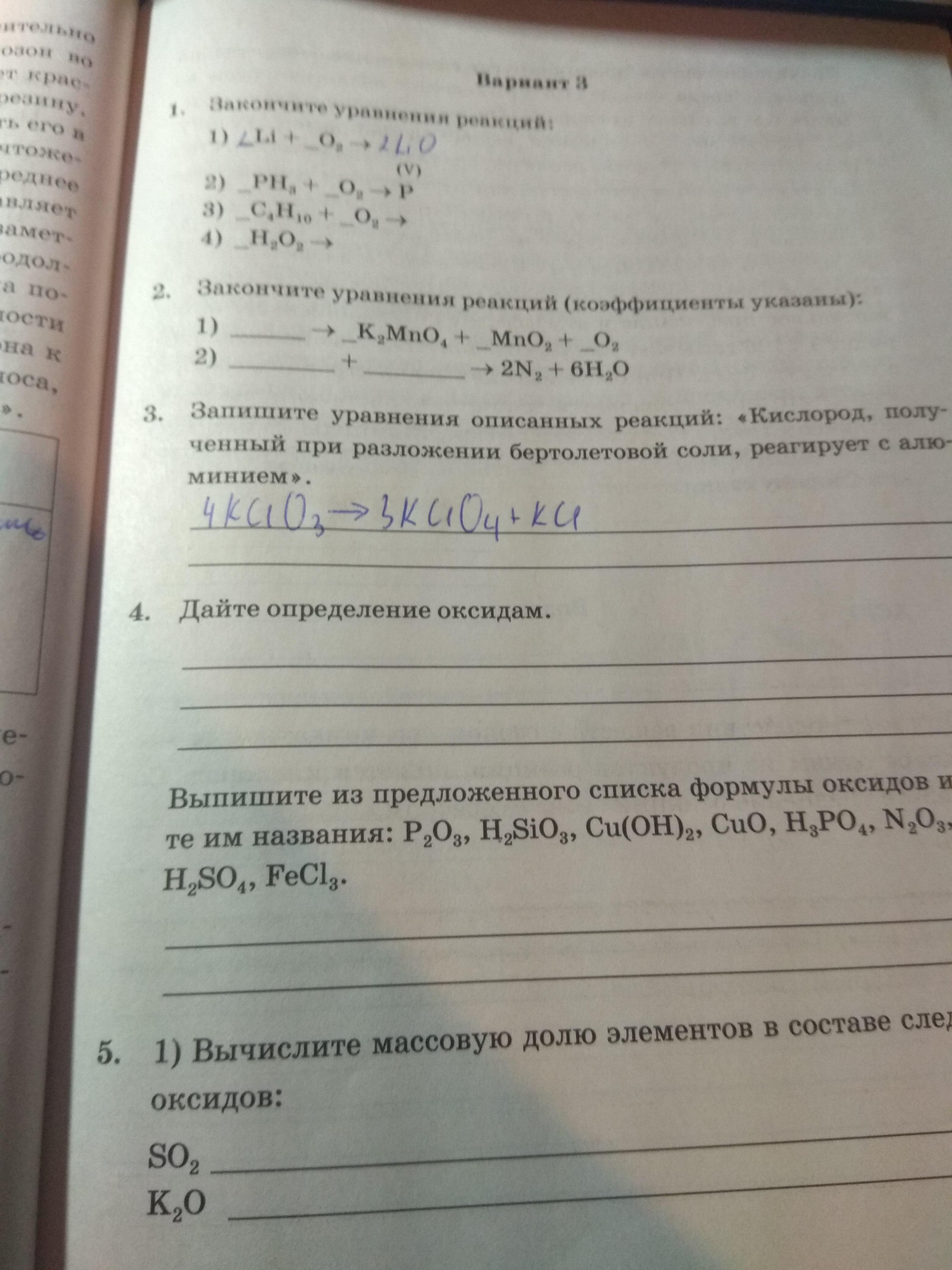 1) 2KMnO4 ---> K2MnO4 + MnO2 + O2