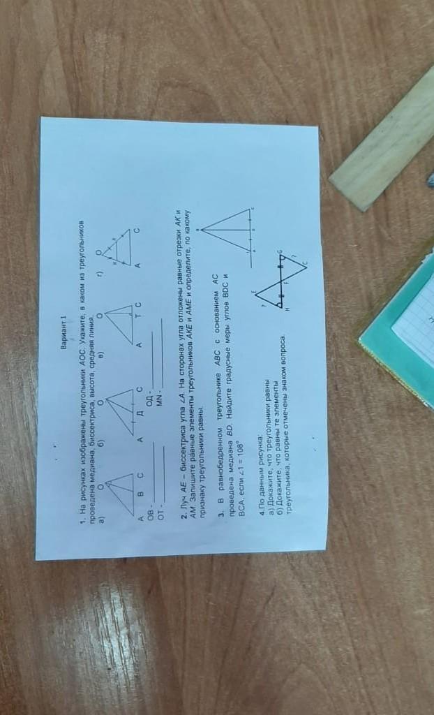 3) 1.угол ВДС = 90 (т.к медиана в равнобедренном треугольнике является биссектрисой и высотой)