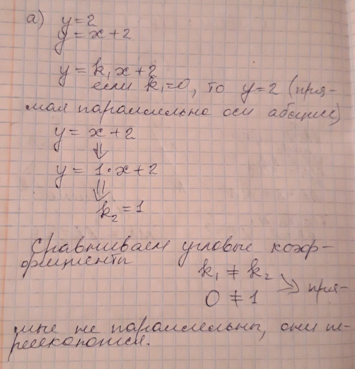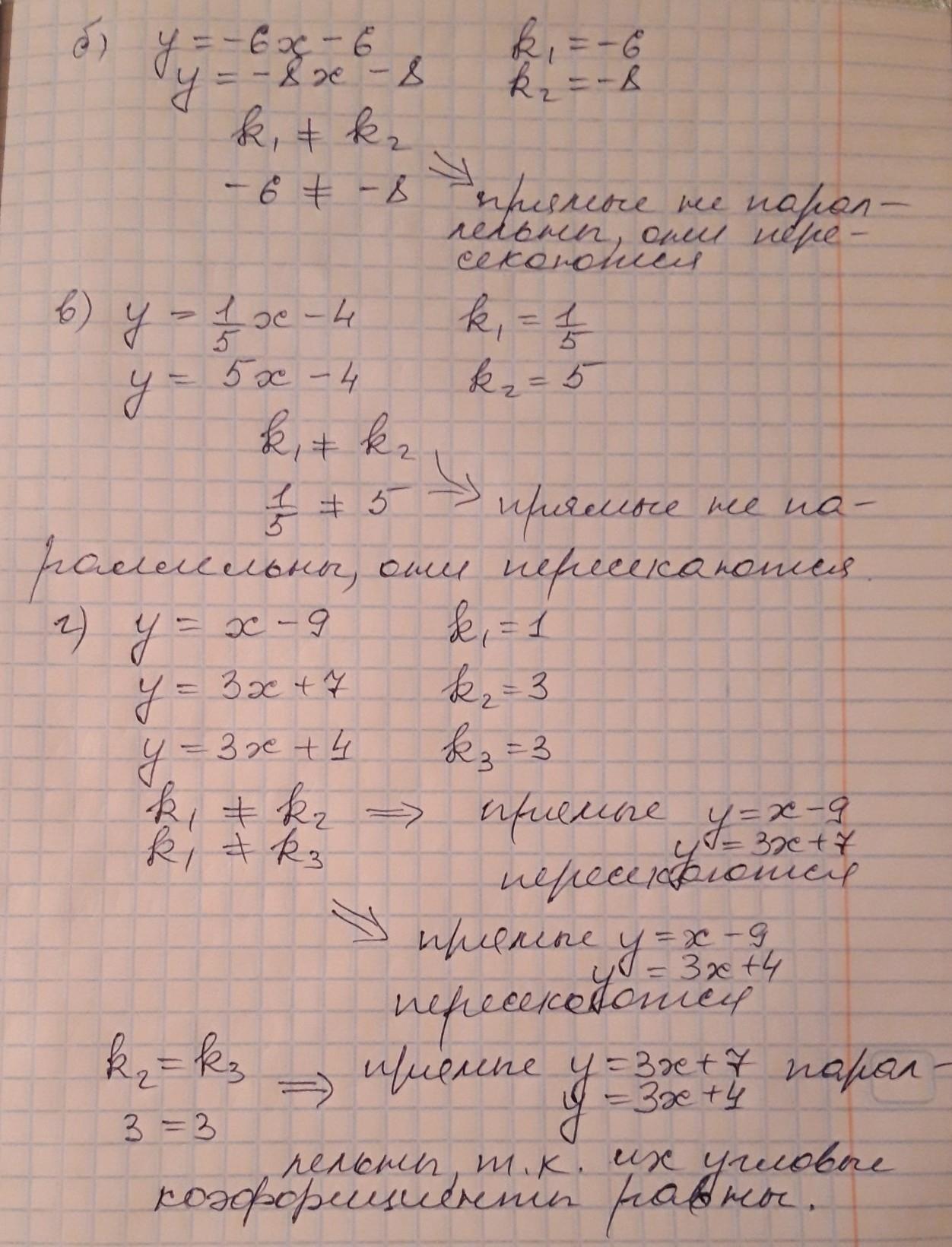 Выберите функции,графики которых параллельные.ответ обоснуйте a)y=2 и y=x+2 б)y=-6x-6 и y=-8x-8