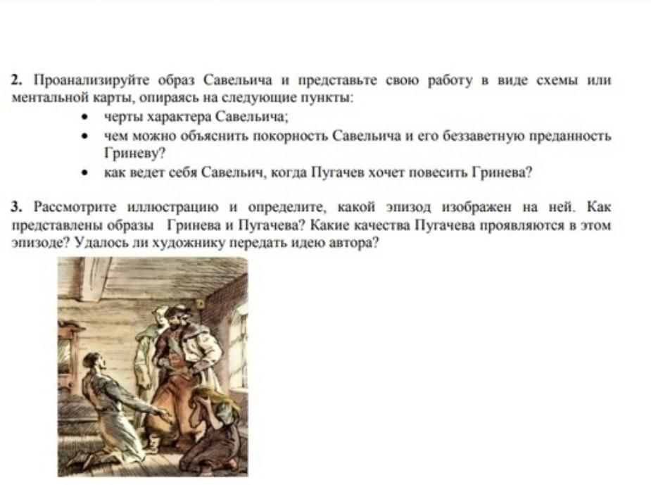 3. На картине изображён эпизод, когда Гринёв и Пугачёв приехали в крепость и обнаружили, что Швабрин мучал бедную Марью. Здесь проявилась человечность Пугачёва: он гневно смотрит на Швабрина, стоящего перед ним на коленях, просящего прощения за этот подлый поступок.