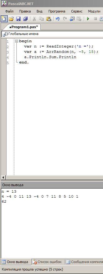 var a := ArrRandom(n, -5, 15);