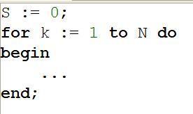 Задан массив A[1..N]. Какой оператор надо поставить вместо многоточия, чтобы найти сумму всех элементов массива в переменной S? *