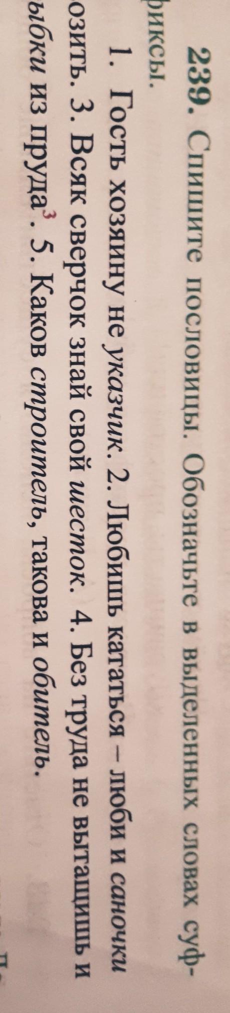 239. Спишите пословицы. Обозначьте в выделенных словах суф-