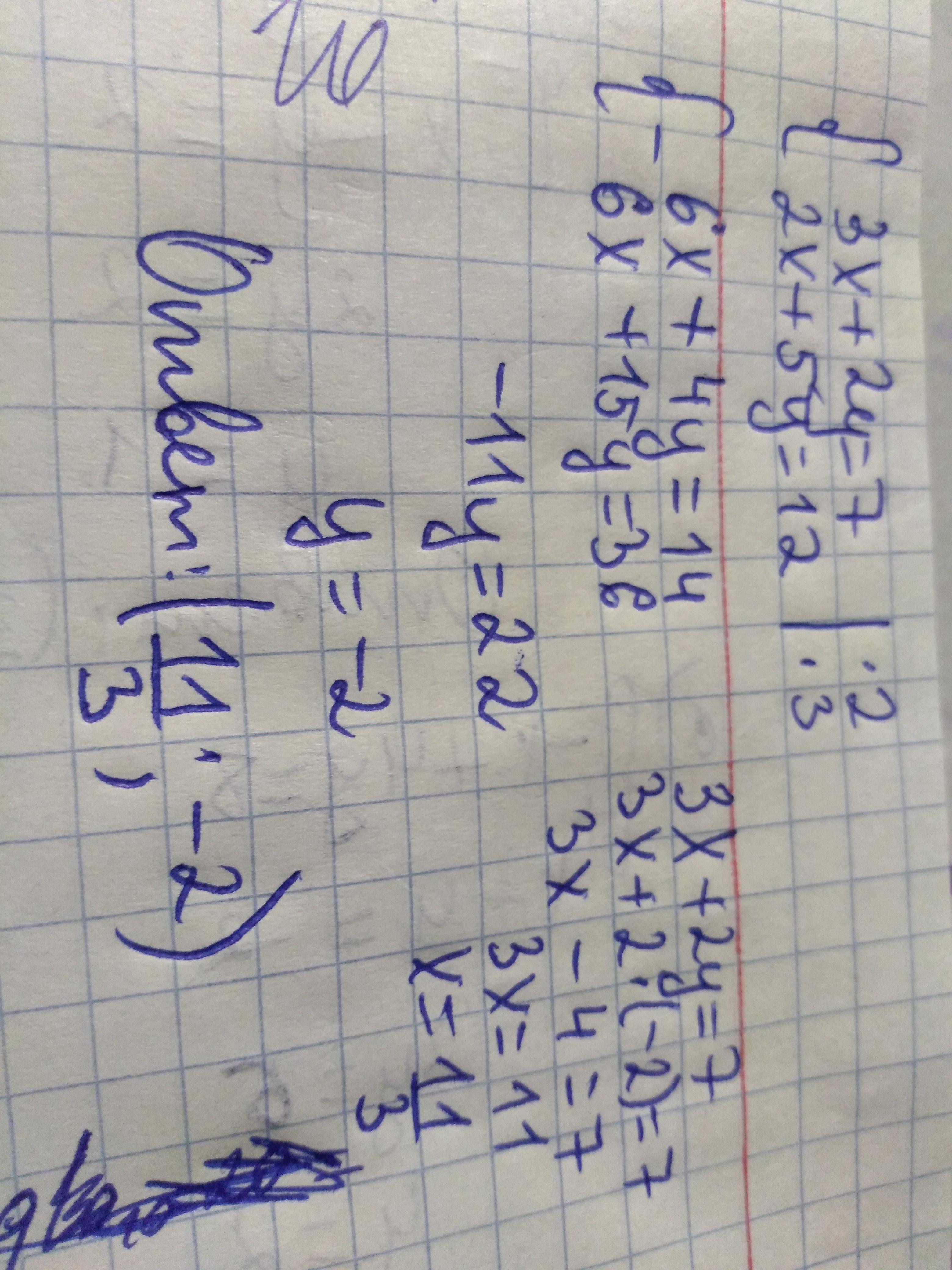 Помогите срочно метод алгебраического сложения {3x+2y=7