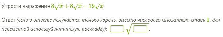 Объяснение: Выносим √x за скобку: √x(8+8-19)=√x*(-3)=-3√x