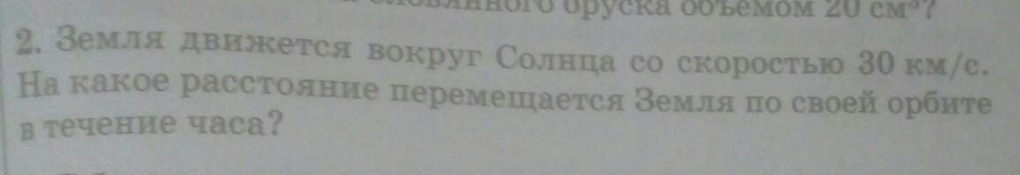 Объяснение:В 1 час= 3600с;Скорость Земли 30 км/с;