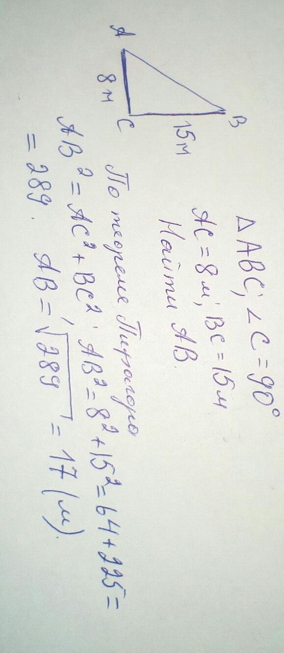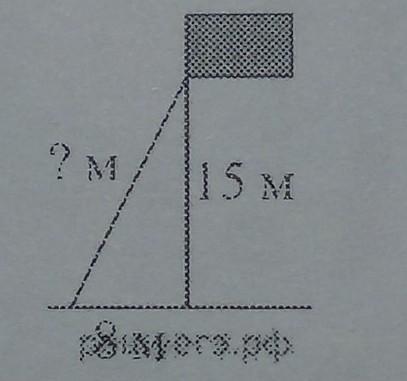 Точка крепления троса, удерживающего флагшток в вертикальном положении, находится на высоте 15 м от земли. Расстояние от основания флагштока до места крепления троса на земле равно 8 м. Найдите длину троса.
