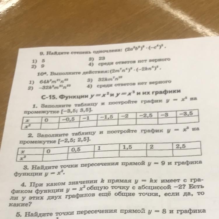 х^2= 0;0.25;1;2.25;4;6.25;9;12.25