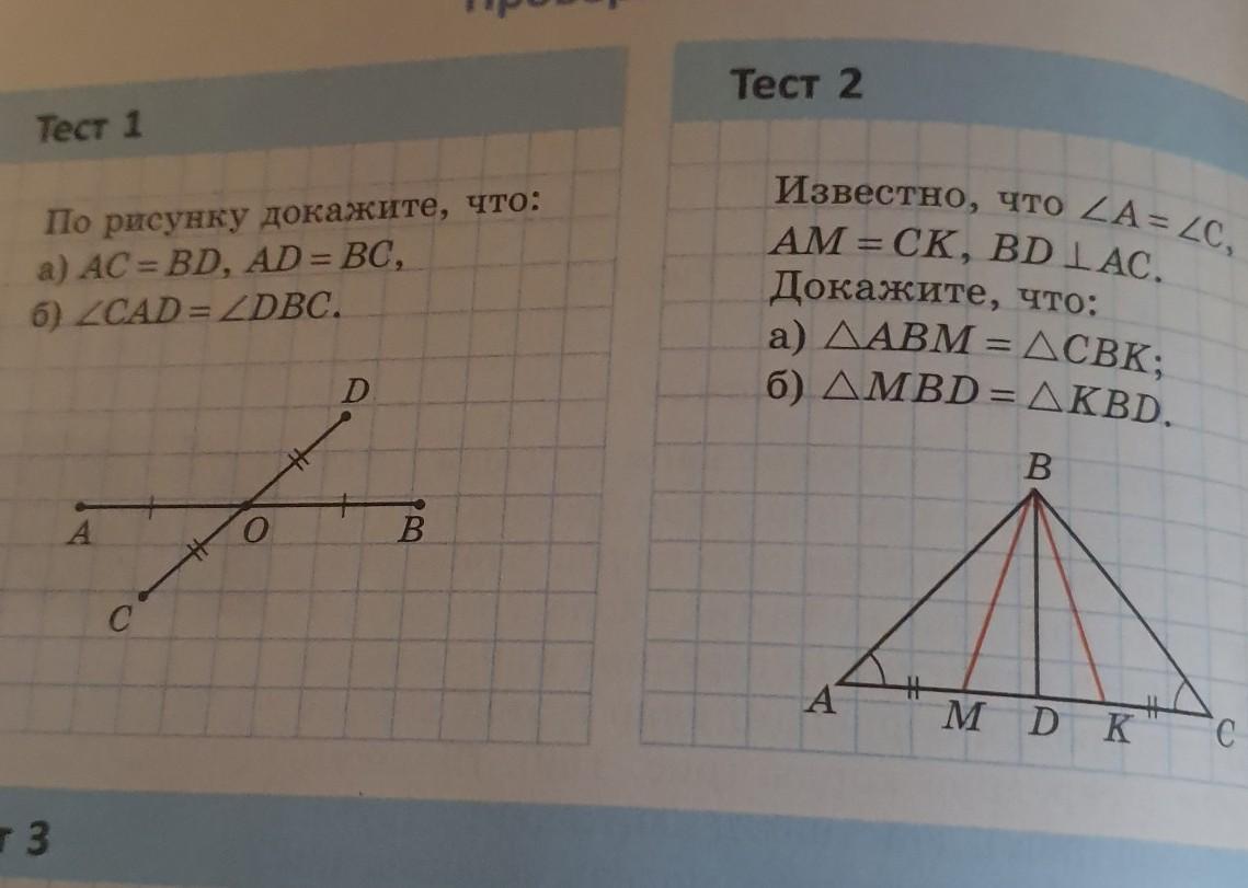 ∠MBD=∠KBD,BD общая ∠D=90° ⇒ΔMBD=ΔKBD по 2 признаку