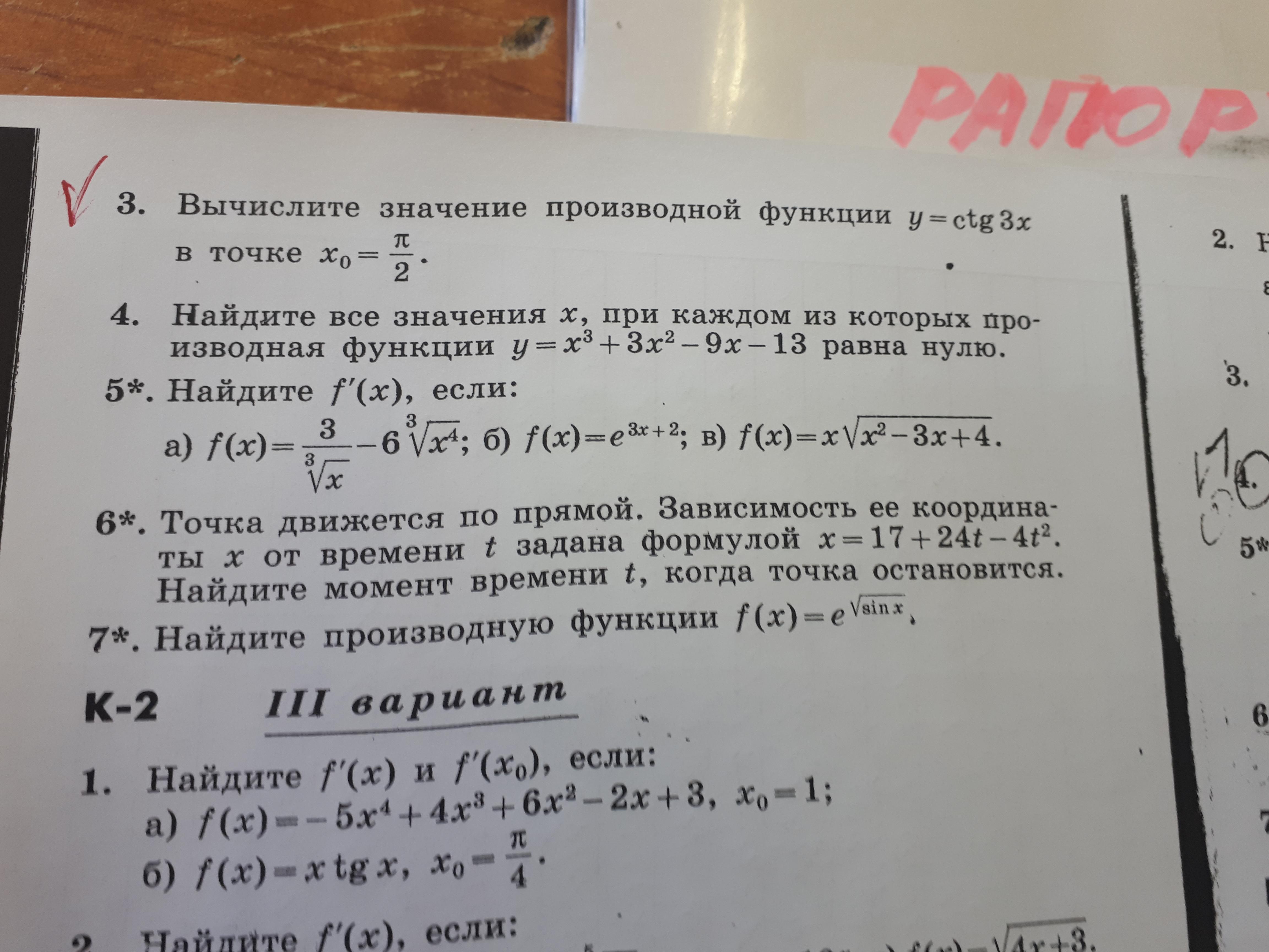 а)сначала избавимся от корней, =3x^(-1/3)-6x^(4/3), f'=3*(-1/3)x^(-4/3)-6*4/3x^(1/3)=-1/ x^4/3-8x^1/3=(дальше можно опять вернуться к корням) =-1/ (корень 3-й степени из x^4 -8 *(корень 3-й степени из х)