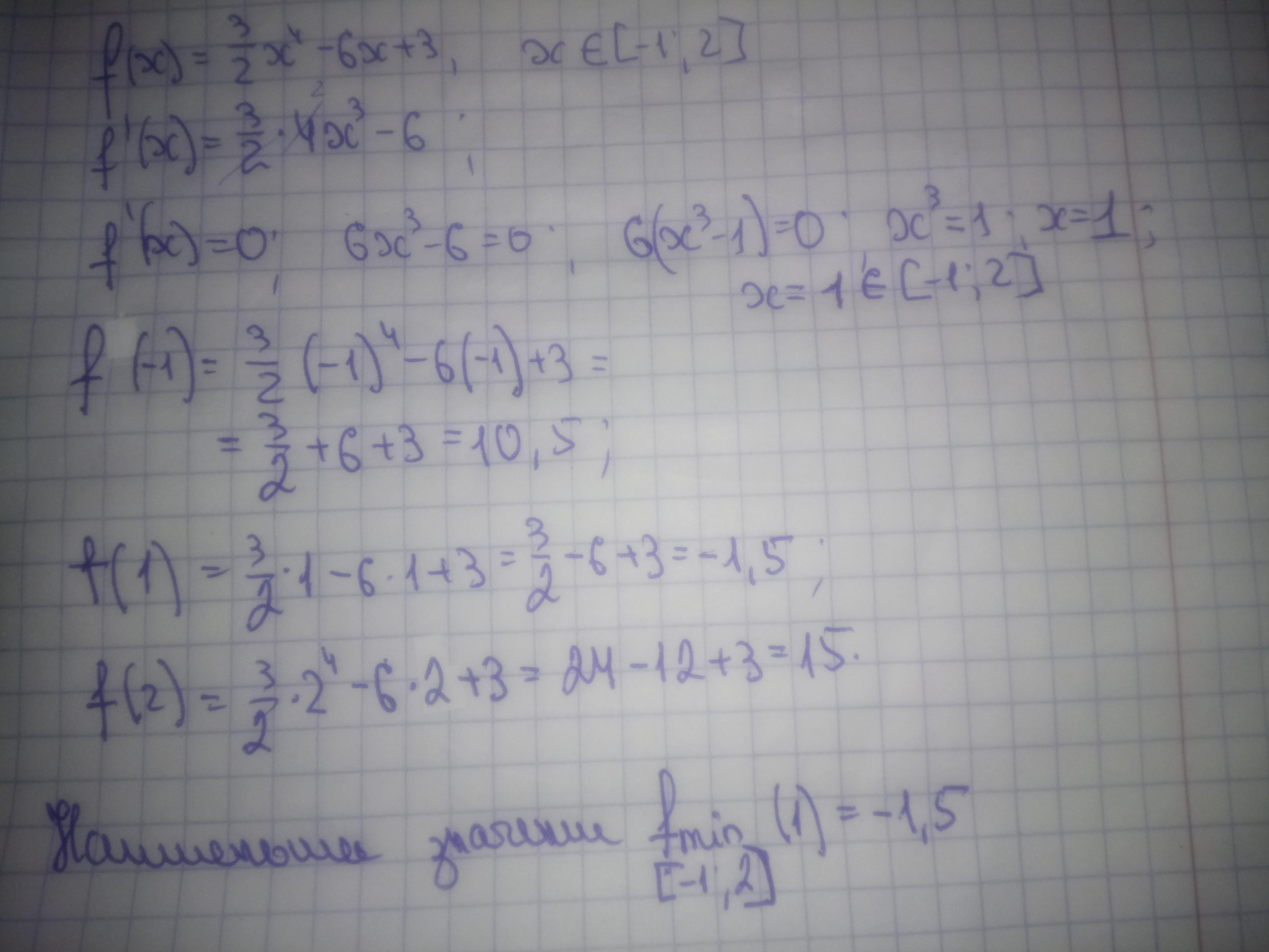 f'=3/2*4x^3-6=6x^3-6=6(x^3-1), x^3-1=0, x=1, 1 Е [-1;2], __-__[1]__+__ f',