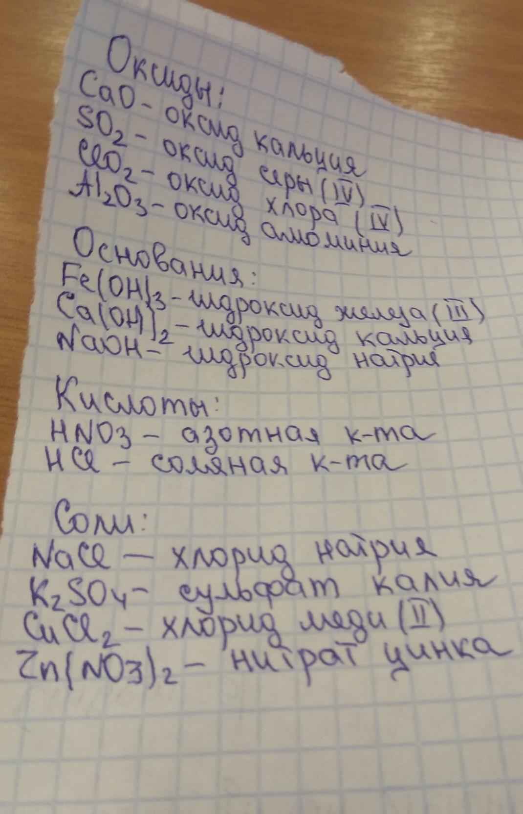 Распределите вещества по классам:оксиды,основания,соли, кислоты.Дайте их названия.