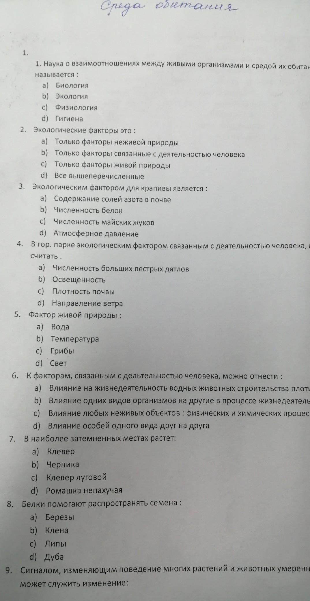 Ответ:1.b,2.d,3.а,4.a,5.c,6.c,7.b,8.d,9.климата