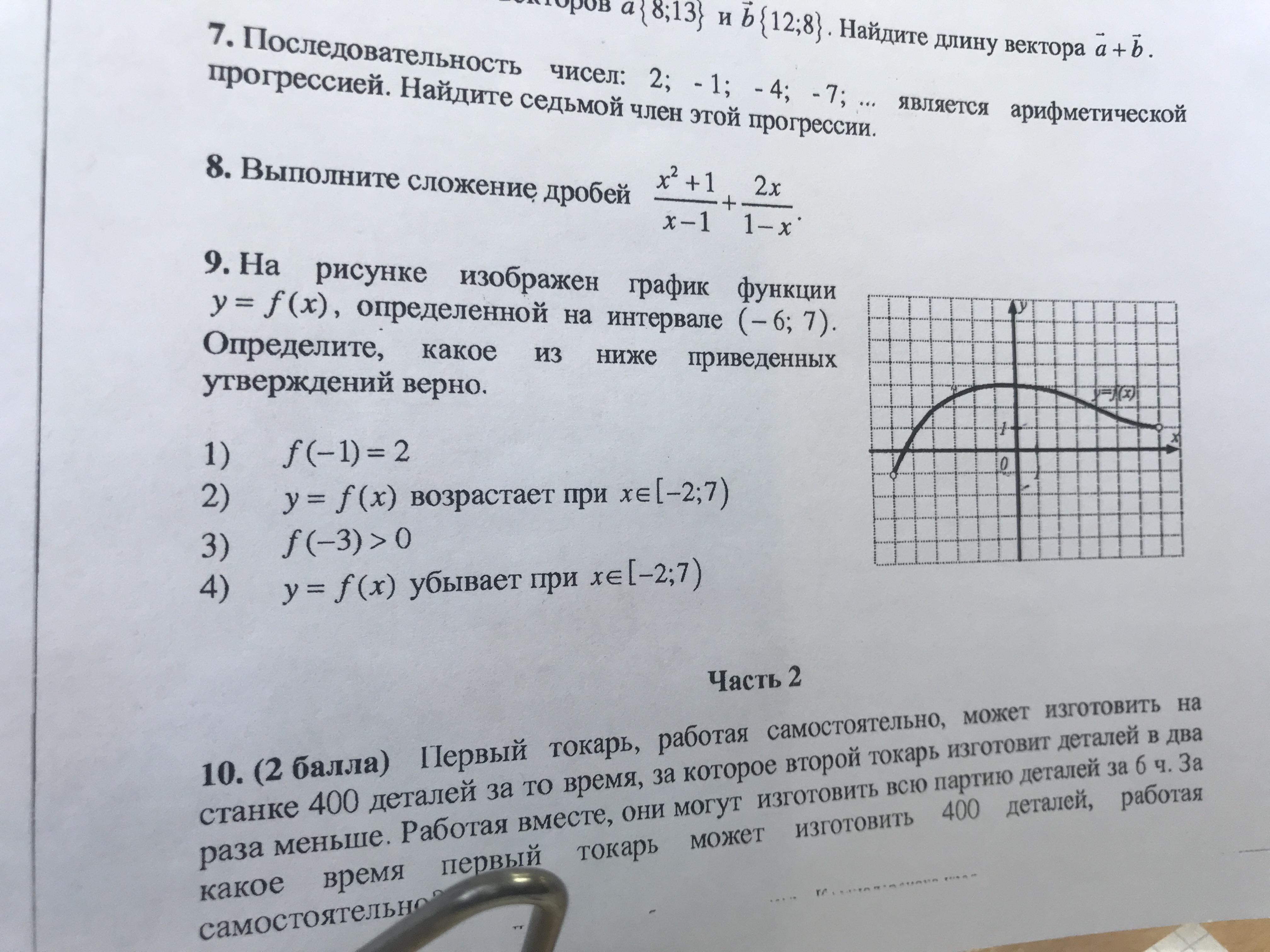 Объяснение: при х=-1 значение функции у=3; функция возрастает от [-2;0] и убывает от [0;7]