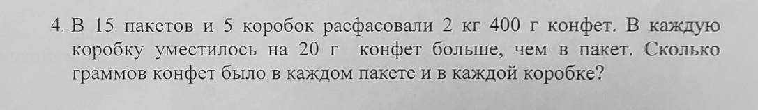 Пусть хг-в одном пакете,тогда х+20 г -в одной коробке.