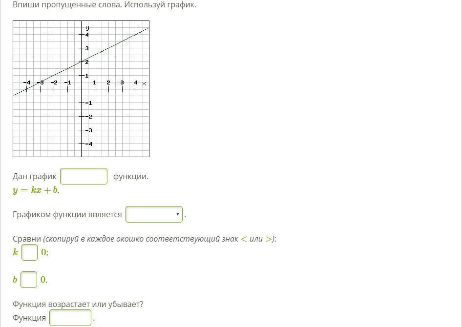 2) Дан график ЛИНЕЙНОЙ функции y=kx+b.