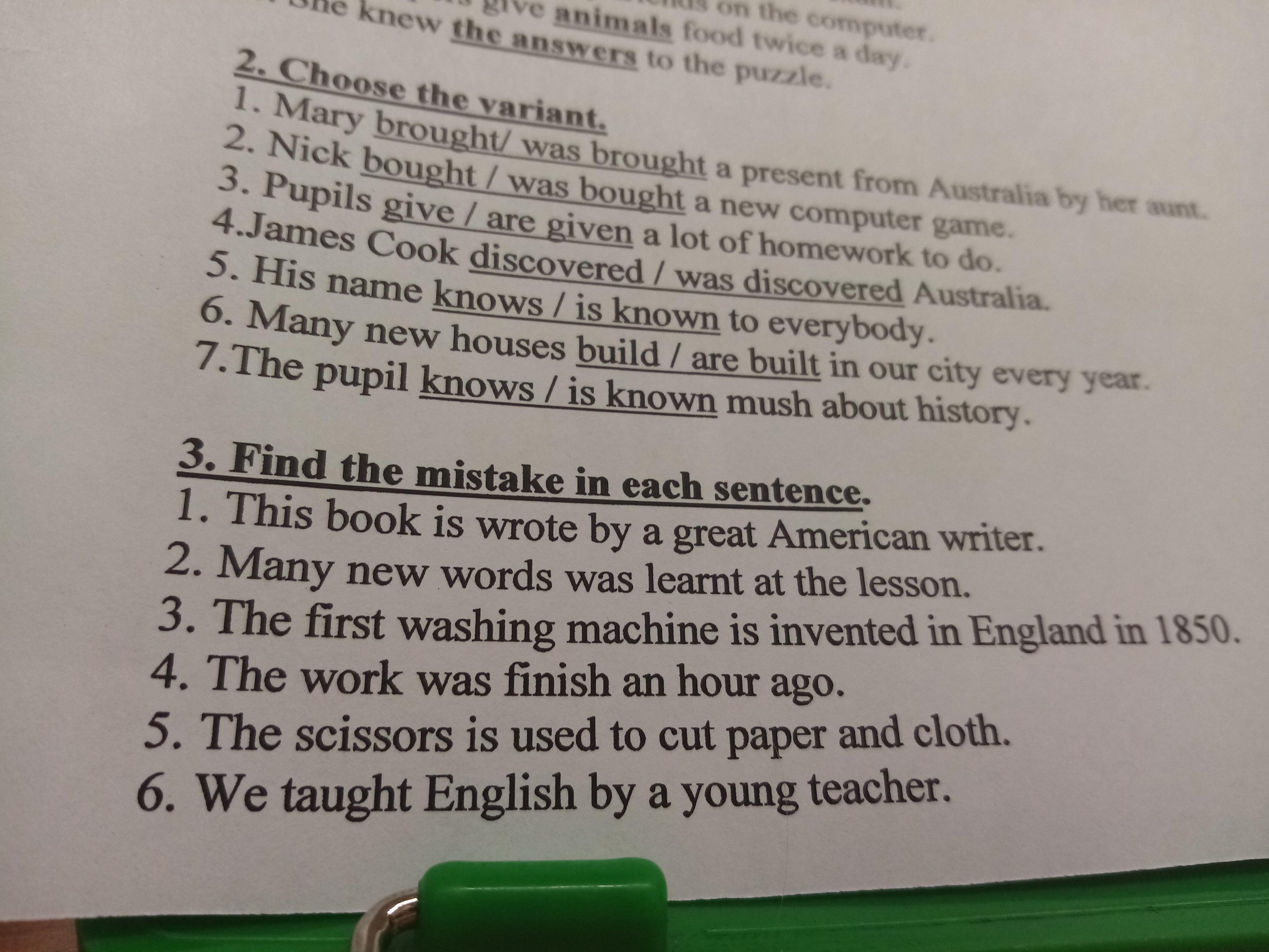 1 was brought 2bought 3 are given 4 discovered 5 is known 6 are built 7 knows