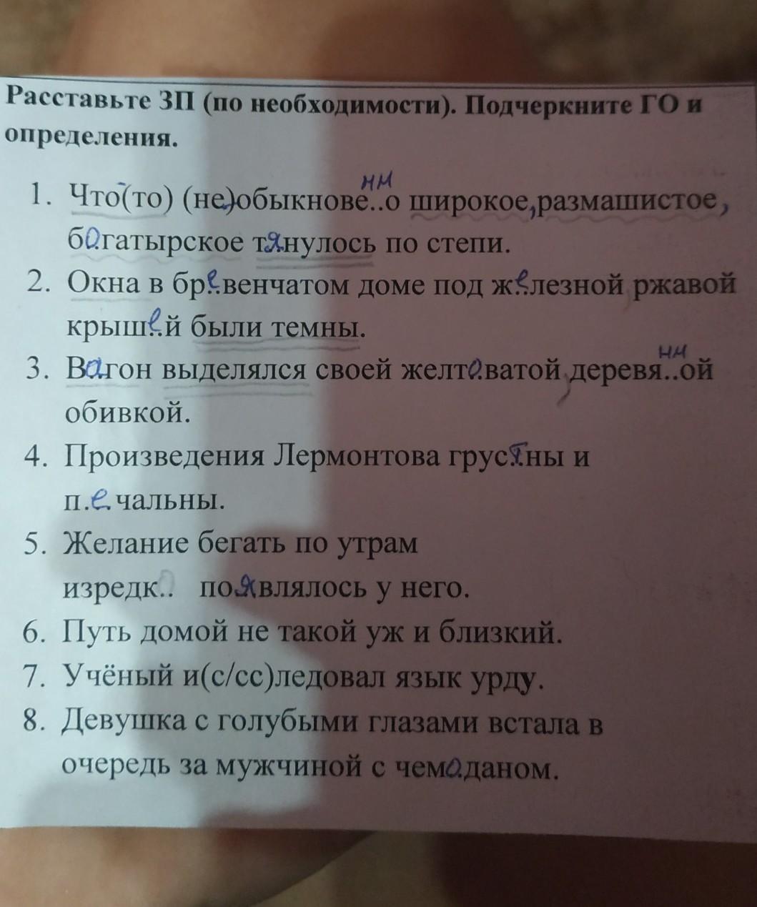 8. Девушка - подлежащее (одна линия), встала - сказуемое (две линии), голубыми - определение (волнистая линия).