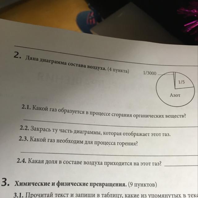 2.1.Вуглекислий газ(CO2) 2.2 1/3000- закрасить 2.3Кисень(O2) 2.4 0,03%