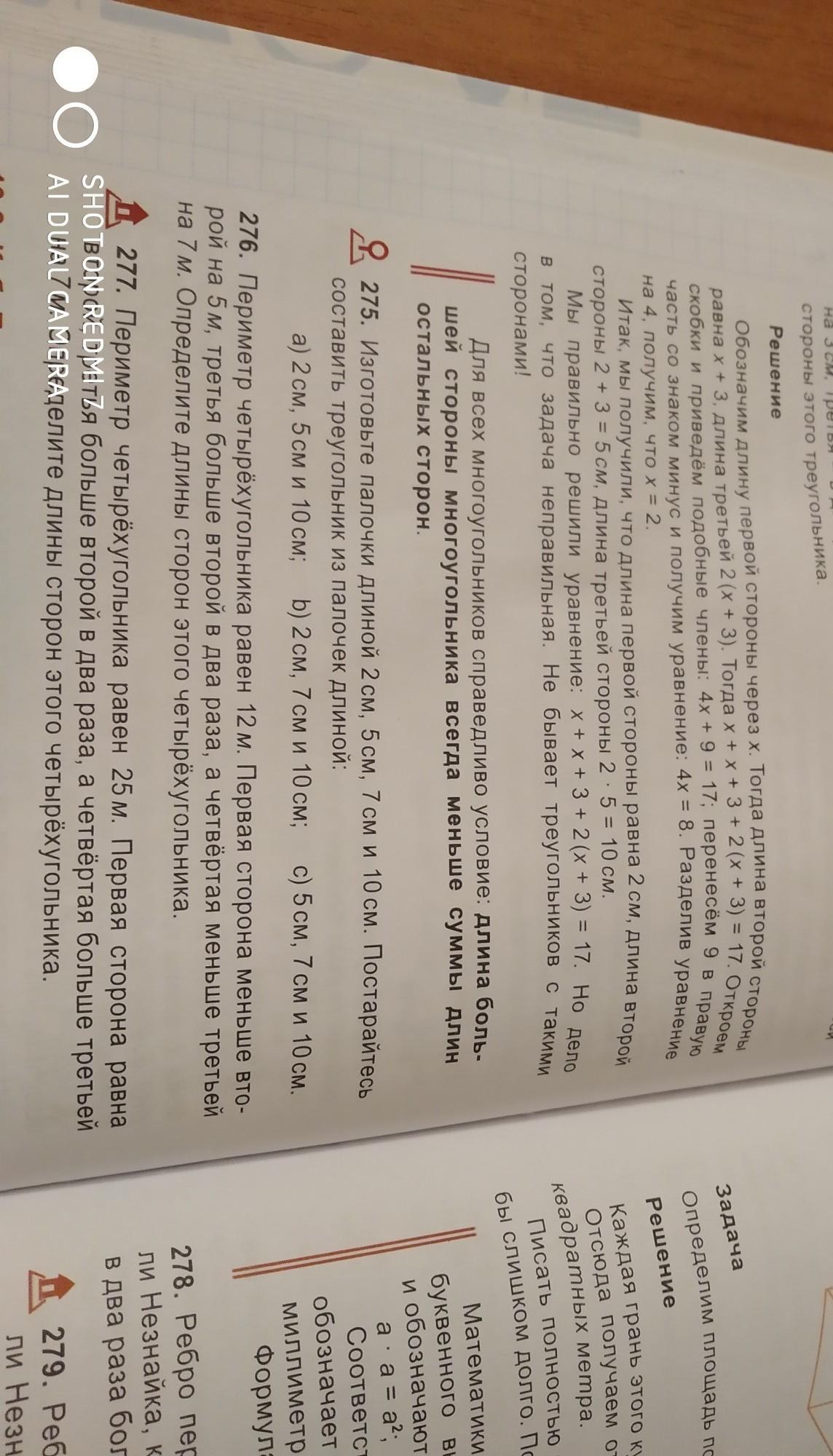 помогите мне пожалуйста номер 277 с уравнением ещё условия и решение 40 баллов