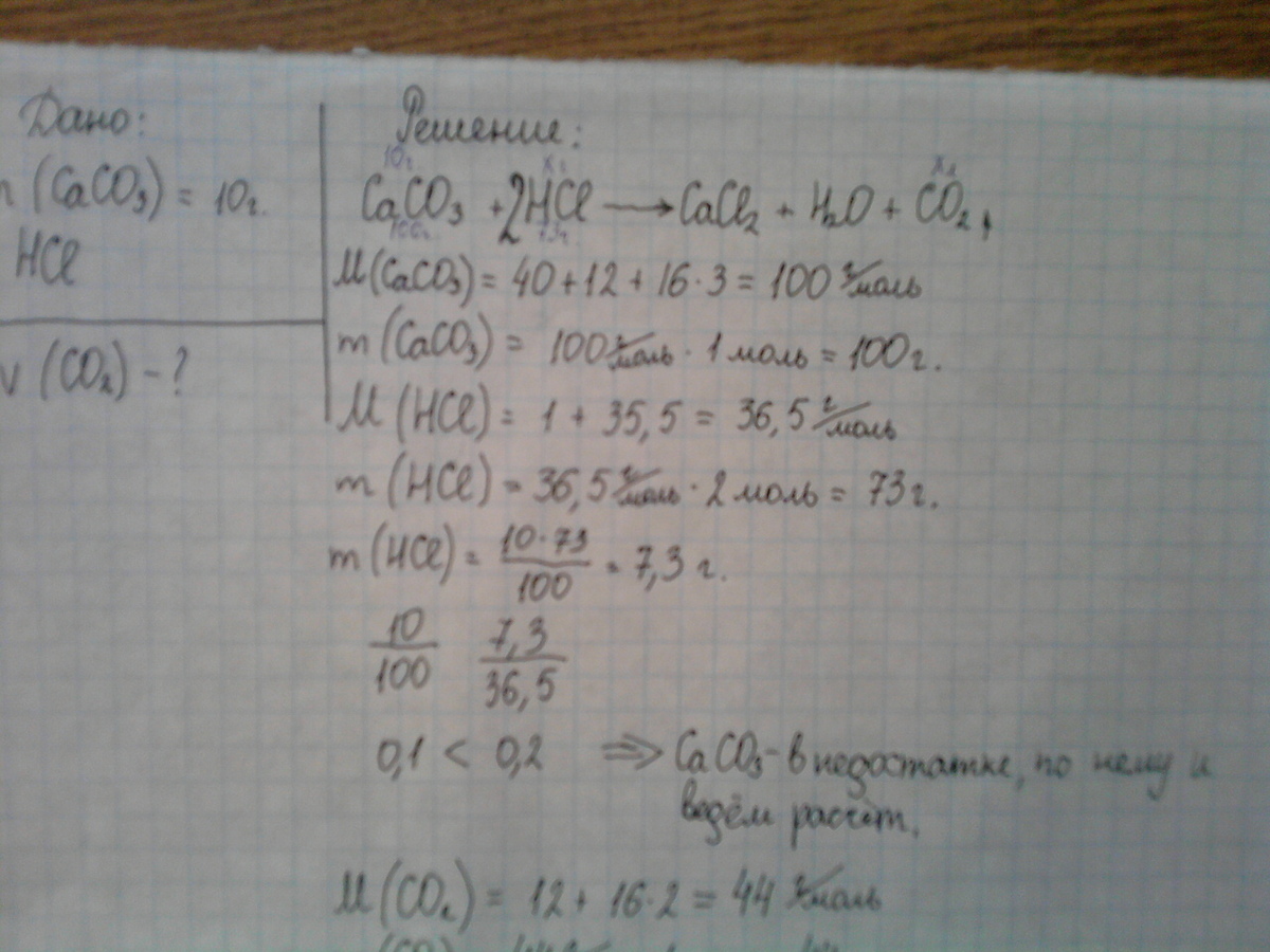 какой объем газа (нормальные условия) выделится при взаимодействии достаточного количества хлоридной (соляной) кислоты с карбонатом кальция массой 10 гр