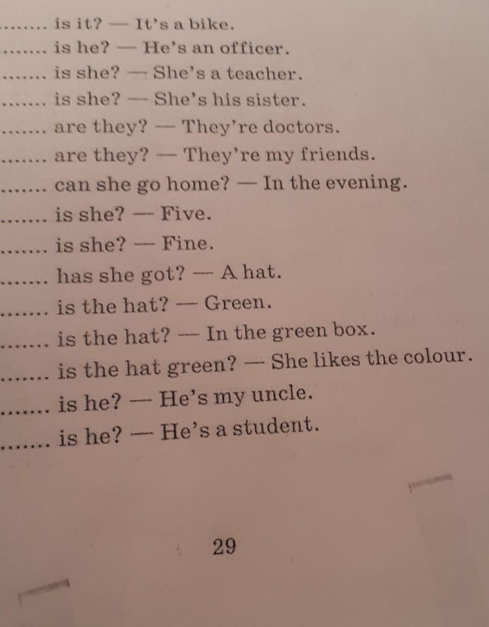 Вставьте пропущенные вопросительные слова: Where, Why, When, Who, What, What colour, How, How old.