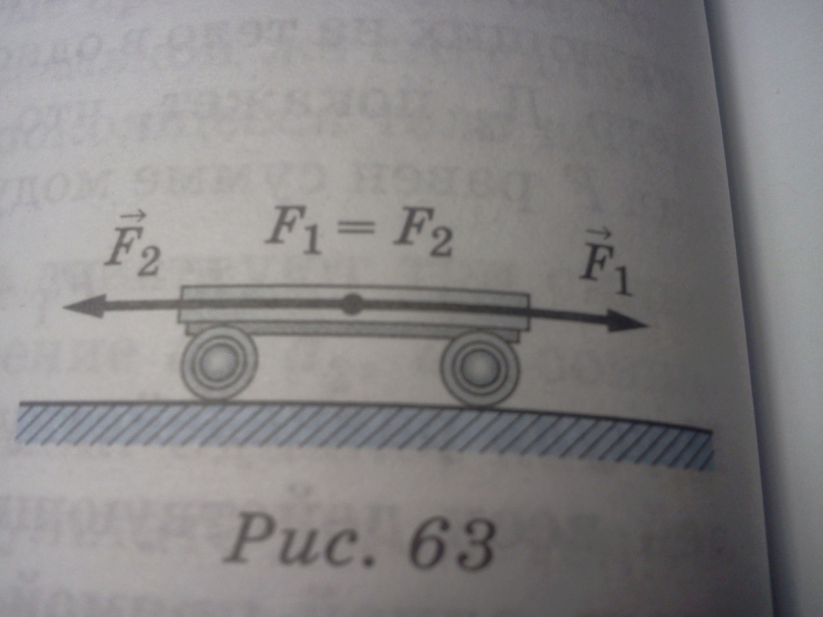Чему равна равнодействующая сил F1 и F2, действующих на тележку? Что вы можете сказать о движении тележки?