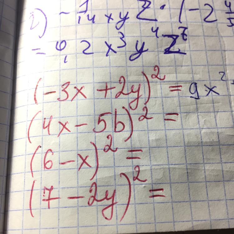 - (4x - 5b) ^{2} = 16x ^{2} - 40xb + 25b ^{2}