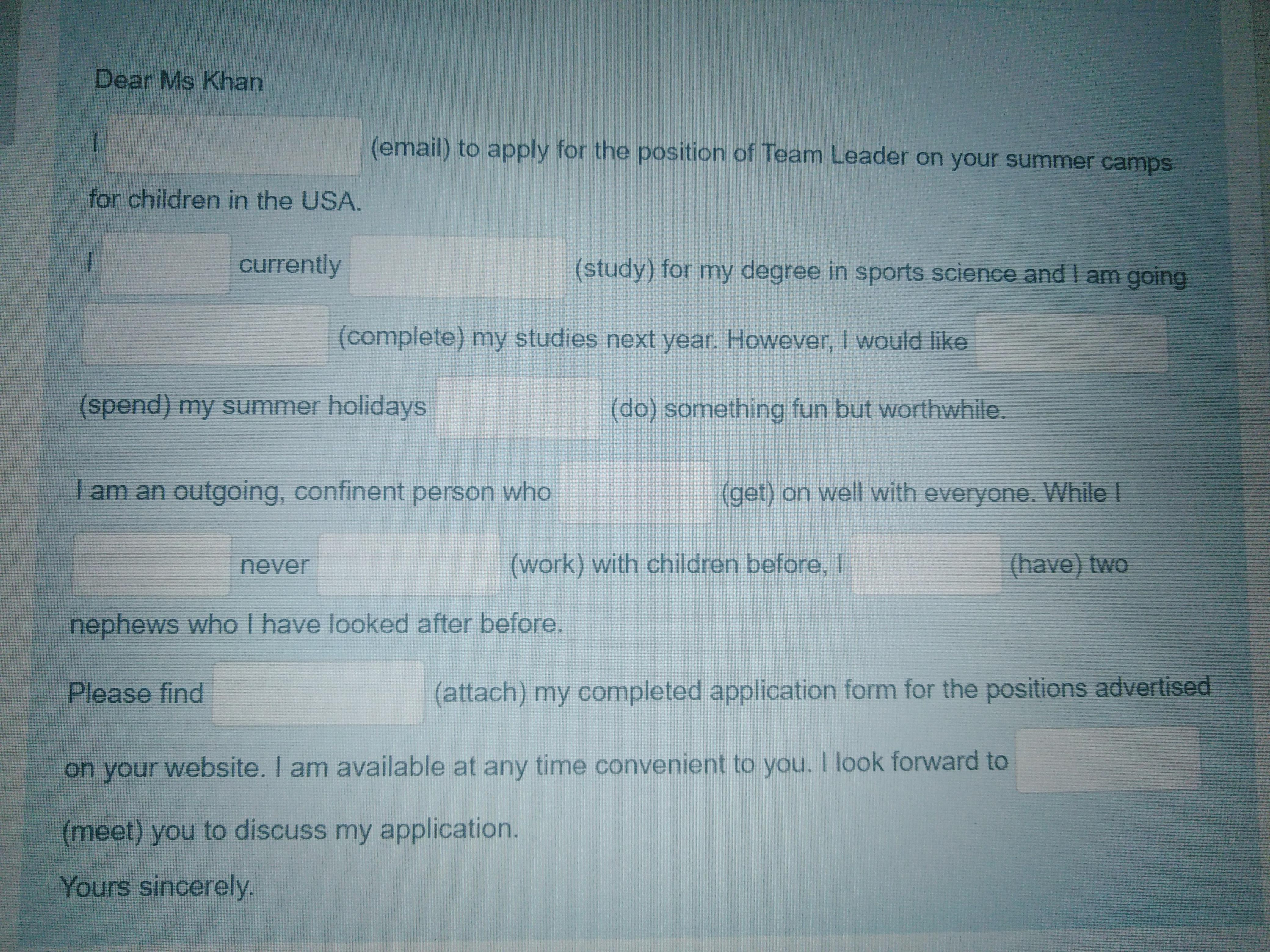 1. have emailed. 2.have и studied и to complete. 3. to spend и doing. 4. got. 5. have и worked и have. 6. and attach. 7. meet