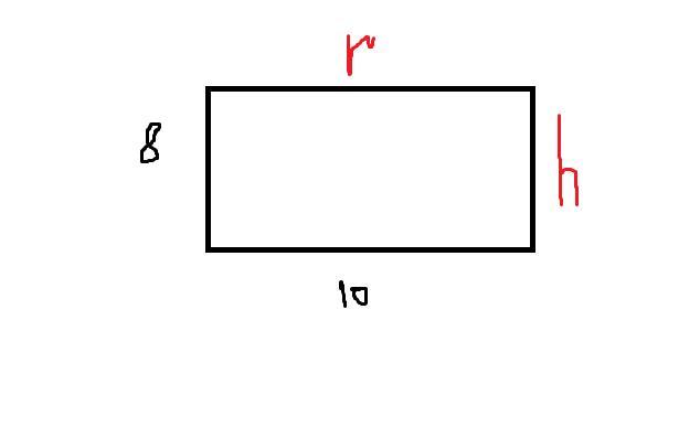 Прямоугольник со сторонами, равными 8 см и 10 см, вращается вокруг меньшей стороны . Найдите полную площадь поверхности полученного тела вращения.