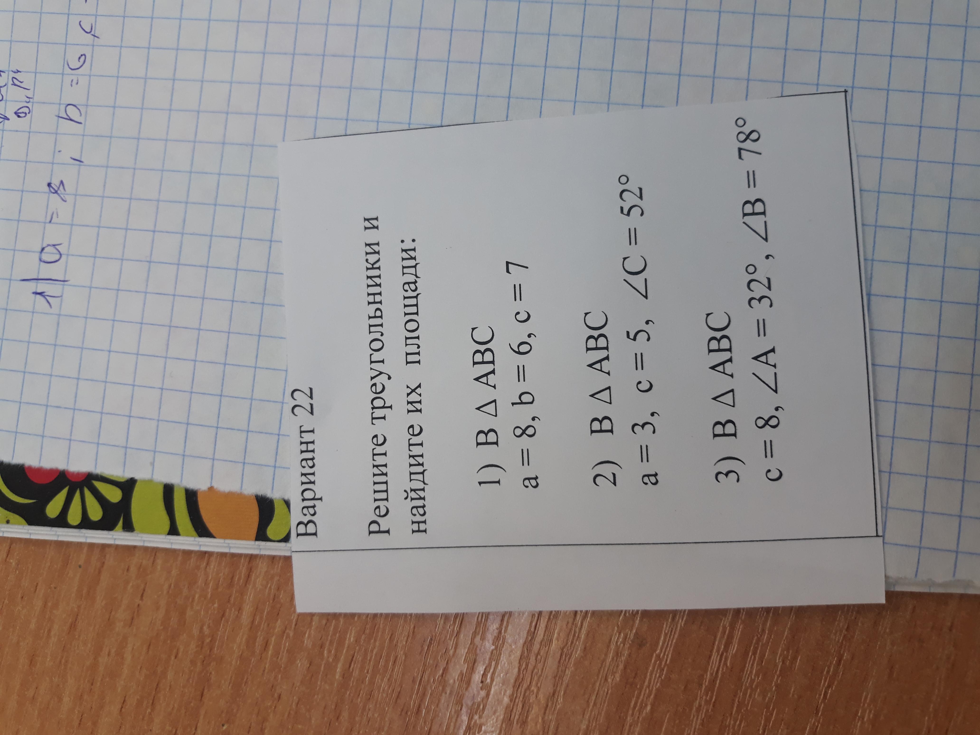 1) по т косинусов можно найти углы. по ф Герона-площадь