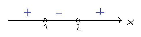 Отмечаем точки на числовой прямой, определяем знаки, находим нужный нам интервал (см. приложение). Точки выколоты, если что, ибо у нас строгое неравенство.