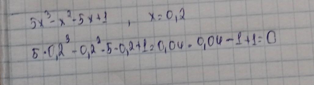5x³-x²-5x+1=(5x³-5x)-(x²-1)=5x(x²-1)-(x²-1)=(x²-1)(5x-1)=(0,2²-1)(5·0,2-1)=(0,2²-1)(1-1)=(0,2²-1)·0=0