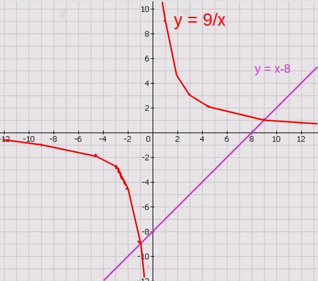 (у = 9/x и у = х-8 если со вставкой закосячил)