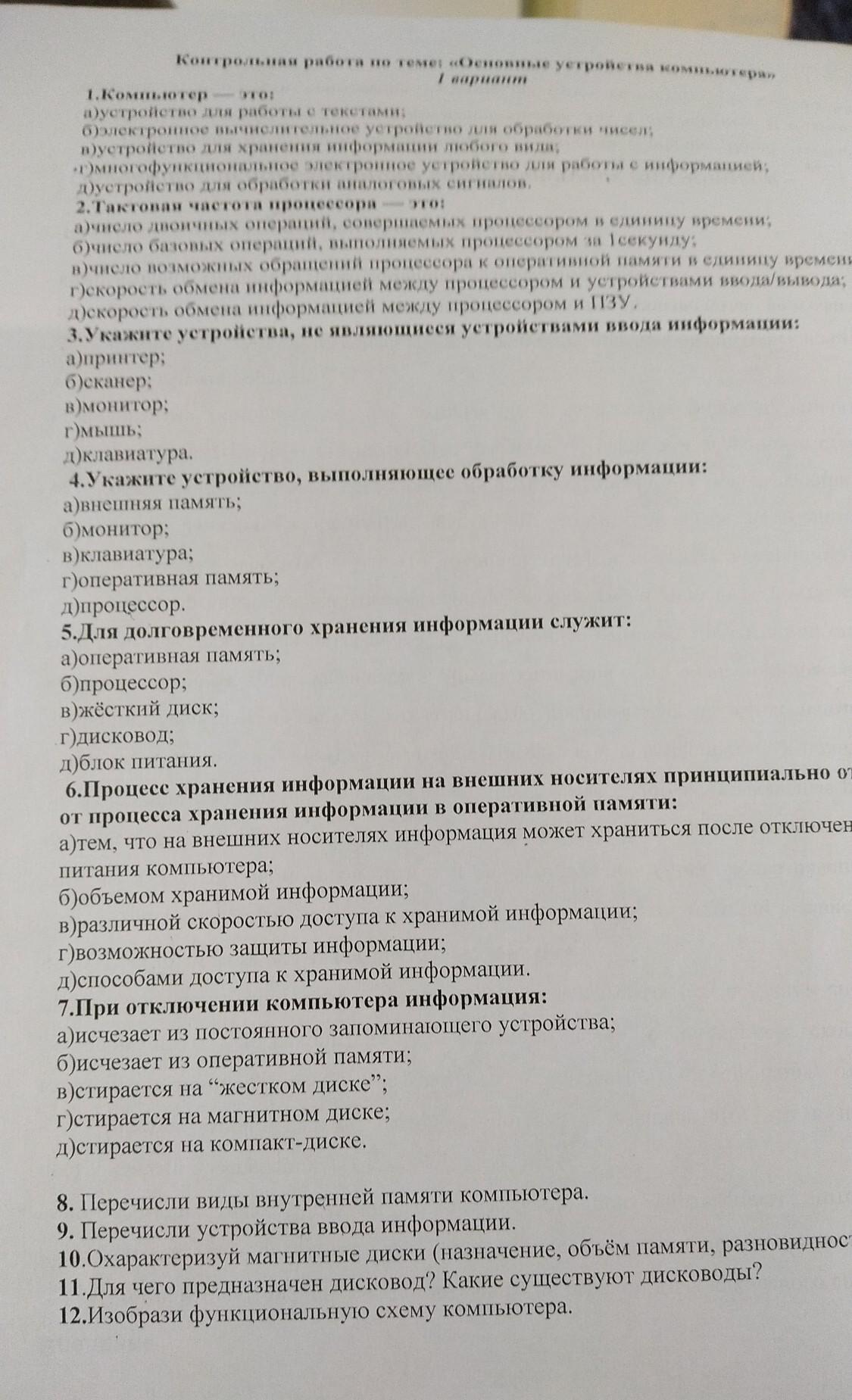 1 - г, 2 - а, 3 - а,в ,4 - г , 5 - в ,6 - а, 7 - б, 9 - клавиатура, сканер, мышь, флеш- карта.