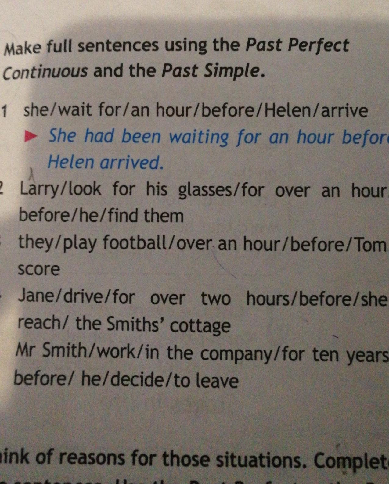2. Larry had been looking for his glasses for over an hour before he founf them.