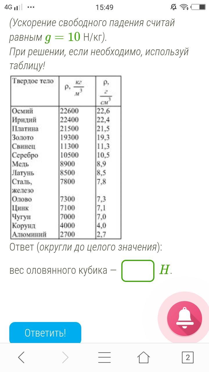 Вычисли вес оловянного кубика с ребром длиной 25 см.